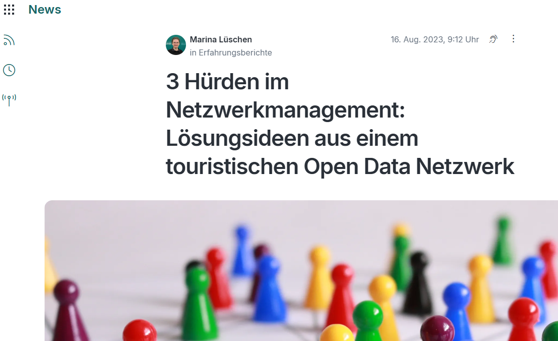 Bei den Beiträgen handelt es sich z. B. um Berichte über spannende Entwicklungen und Erfahrungen aus der Praxis, um interne oder externe Veranstaltungsankündigungen oder um Infos rund um die Plattform selbst.